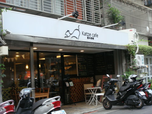 Katze cafe'是德語,意思是「貓咪咖啡廳」,女店長晶晶把自已養的兩隻貓「優米」和「胡椒」當作自已的店名