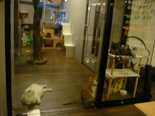 店裡的主角,當然就是貓咪囉!另設一區玩貓室,讓想跟貓咪玩的人能進去玩,想好好享用下午茶休息的人也能不被貓咪打擾!躺在左方的白貓是這兒的老大「優米」