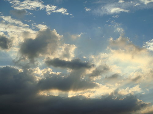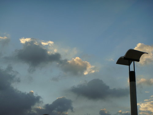 黑壓壓的雲層中,夕陽還是努力地找到出口,透出光來