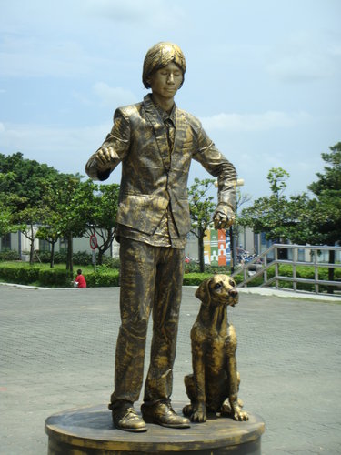 假日的淡水,如銅像般的街頭藝人,吸引大家圍觀,這麼熱的天氣,要定住不動還真是很大的考驗呢!還好那隻狗狗不是真的,不然會被告虐狗滴!