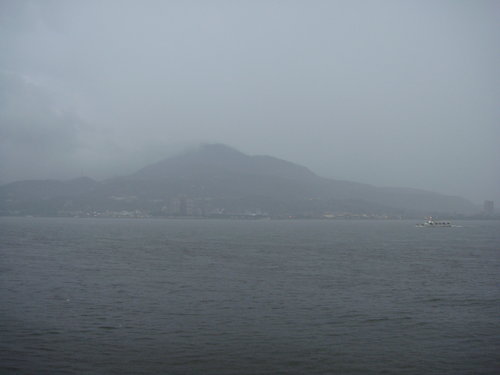 來時的淡水艷陽高照,哪知回程時觀音山在雨勢中已濛上一層白紗,沒有永遠的天色常藍,但雨過總會天晴的!