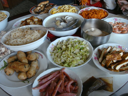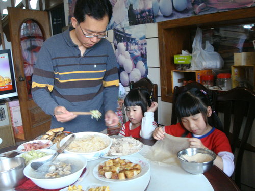 清明節當天,爸比開車載我們,沿路就是塞塞塞,終於回到嘉義阿公阿嬤家,忙了一整個上午的阿嬤為我們預備了潤餅大餐~~粉澎湃呢!