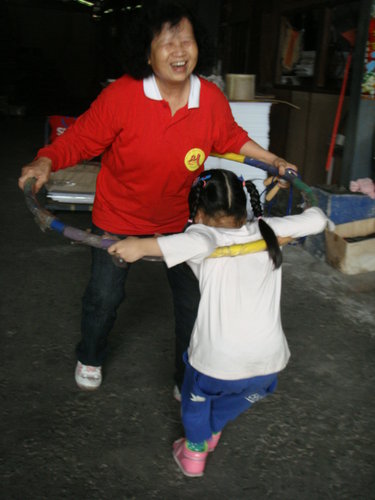 這呼拉圏好大一個,跟著阿嬤一起玩呼拉圏拔河