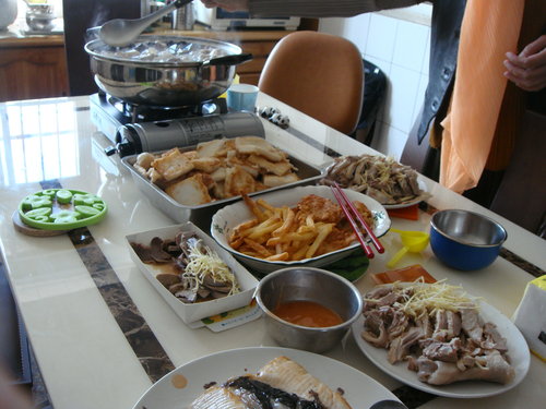 今年,也不知怎的,chiou高中時的老同學都忽然聯絡上了,於是初三這天大家「群聚」在chiou家,Holly很努力想數數有多少人擠進這個家,但人員來來去去,總數不清楚而作罷!