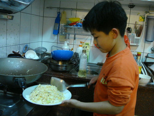 chiou家的翰寶哥哥親自下廚炒飯喔!