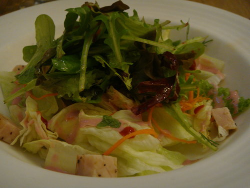 火腿不死鹹,有嚼勁,搭配上Mozzarella乳酪,清爽、不膩的口感加上特殊處理過的野菜,不錯的開胃菜。