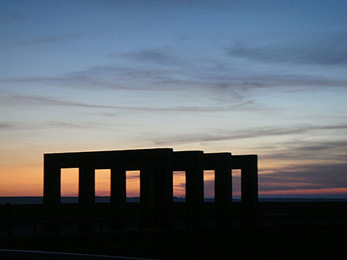 在晚霞中,西瀛虹橋夜間照明光束呈現紅、橙、黃、綠、藍、靛、紫七彩霓虹光,好美喔!