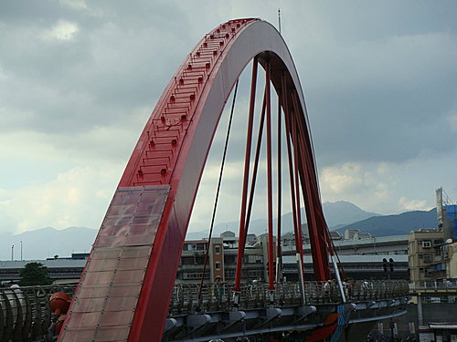 這是台灣首座S型橋面的景觀大橋,2007年9月完工開放,沒有橋墩,而是以拱門鋼樑連結支撐,四條鋼索裝有阻尼器可防震,全長167米,橋面寬4.5米。
