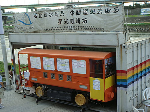 彩虹橋下坐著喝咖啡和飲料的民眾,在忙碌的台北市,能有如此悠閒的地方真不錯!