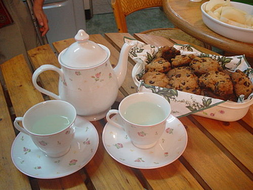 有了餅乾,當然少不了茶,第一壺就來個後院名產「香草茶」,記得有迷迭香、馬鞭草、檸檬草,看似沒啥茶色,卻有極舒服的香氣喔!