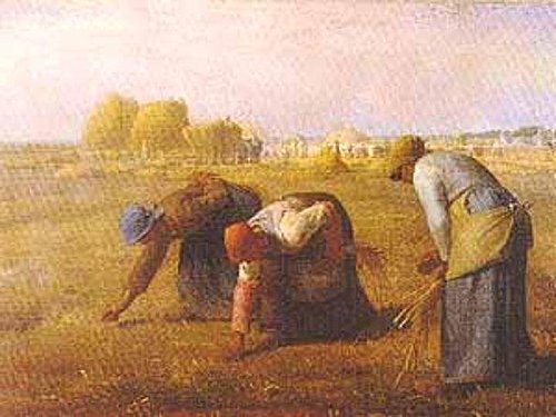 聖經上說:在你們的地收割莊稼,不可割盡田角,也不可拾取所遺落的…應留給窮人和寄居的」(利未記19章),正是這幅畫所要表達的。