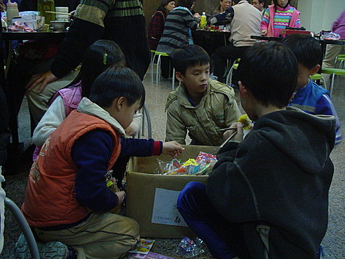 阿漢阿ㄅㄟ帶來了一大箱的玩具,吸引了小朋友們所有的目光,全圍在箱子旁,盡情地挑~還可以分送來吃飯其他客人的小孩呢!
