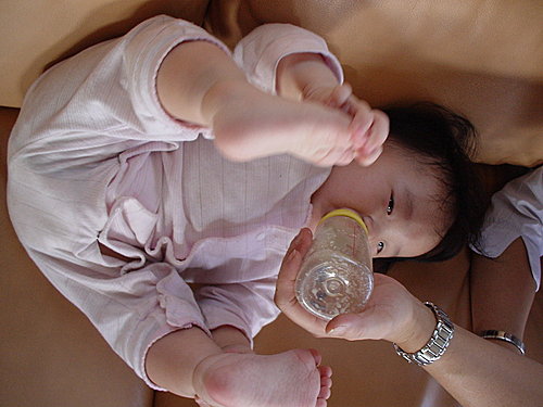 人家說吃飯皇帝大,小宣喝ㄋㄟ ㄋㄟ時,手腳會不時舞動,擺出最可愛、最滿足的姿勢呢!(餵ㄋㄟ ㄋㄟ的那隻手是姑姑的唷!)