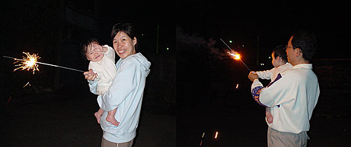 玩仙女棒時,她一點也不害怕唷!是個勇敢的小孩~舉起小小的手,跟著爸媽一起玩!