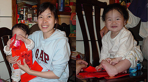 看到她宇宙無敵超級可愛的「恭喜、恭喜」,紅包當然不會少~今年是她第一年回家團圓過年,拿到紅包時懂得緊緊抓住,瞧她高興的咧!