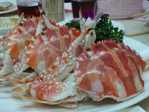 龜吼漁港的海鮮街,到處是可嚐鮮的餐廳,我們選上了「龜吼港餐廳」,因擁有自家捕蟹船隊,貨底新鮮又沒有缺貨之虞,是唯一敢在店門口大方標示「螃蟹大餐」作為攬客店招的餐廳。從基本款的清蒸、清炒、煎烤、芙蓉蟹、桂花蟹到較為費工的咖哩蟹煲、螃蟹粥、花雕枸杞蒸螃蟹等。