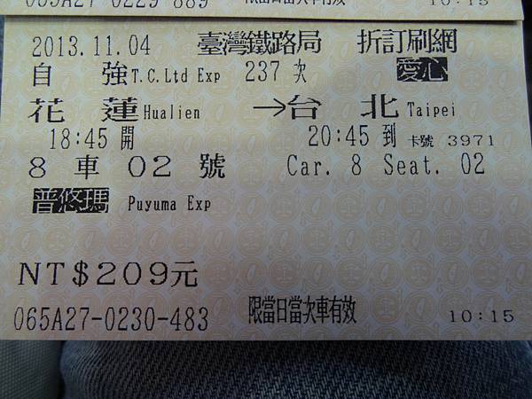 此次的池上之行,從花蓮回台北時,首次搭乘「普悠瑪」,於是像個姥姥般,東拍拍西拍拍,新鮮感咩!