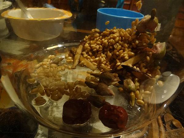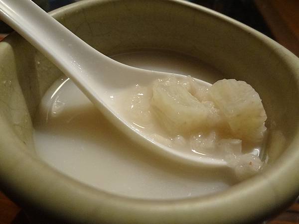 還有一杯杏仁茶,這個杏仁是中藥性質的杏仁,與市面上香噴噴的杏仁不同,杏仁茶內還有山藥