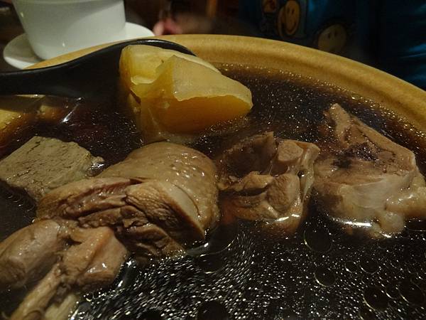 八珍養顏雞湯,濃濃的中藥味兒燉雞肉,S媽喝完雞湯,整個臉色紅潤起來,難怪說是養顏哩!