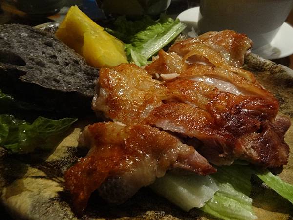 這時,主菜才要上場~~檸檬草煎雞腿,雞腿皮煎的恰恰的,好有口感!整隻雞腿充滿檸檬香茅氣味