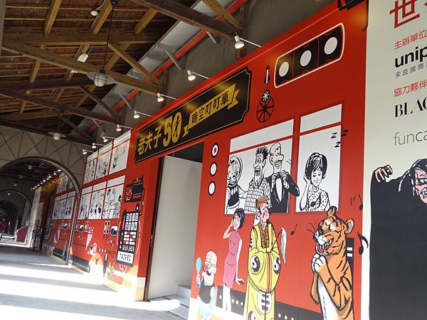 「老夫子50 時空叮叮車」世界巡展-台北首站,是結合室內與室外的展覽,展場分為八大區域,分別為「超時空啟程」、「搖擺眾生相」、「跳進框中框」、「法老牆」、「太空艙」、「回到水虎」、「漫畫工作台」及「創意玩狂想」,利用動靜態聲光科技效果,和老夫子幽默逗趣風格,帶大家穿越時空,進入老夫子天馬行空的異想世界。