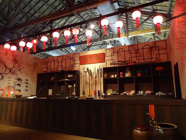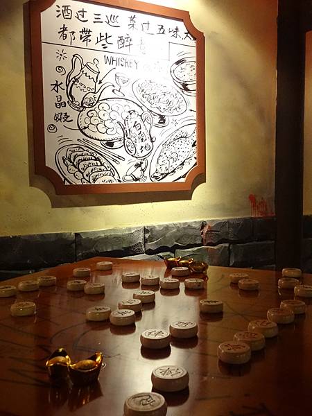 牆上的花窗記錄著過往各種經典決鬥場面,每一桌都有不同的道具可供拍照