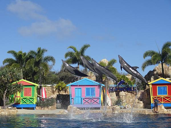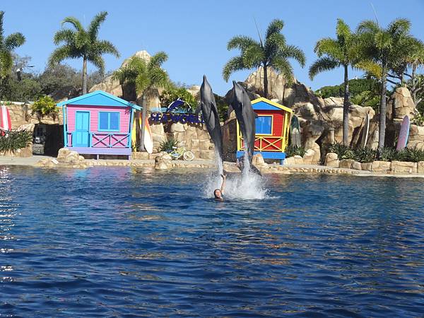 來7萬5000多坪的Sea World園區中,有1/3的面積為援引海水的人工湖,湖泊直接與海相通,成為海獅、海豚、鯊魚的成長天堂,還有許多好看的秀喔!