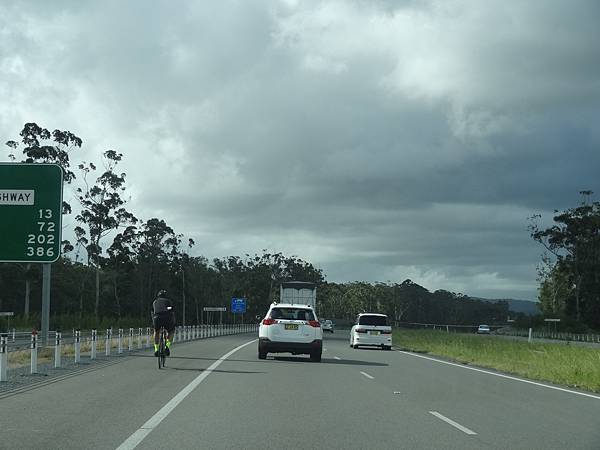 在時速100的高速道路旁,常常可以見到腳踏車騎士,這也是很特別的鏡頭