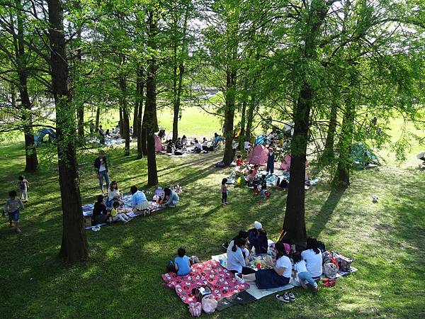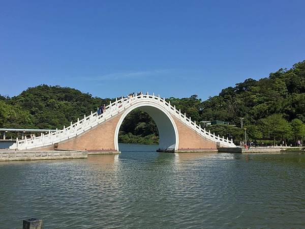 搭著捷運來到大湖公園,在藍天襯映之下,紅色拱橋在湖中閃閃動人