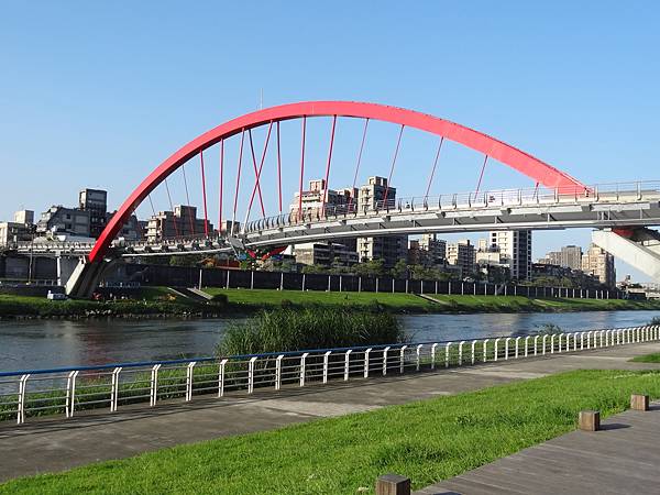 接著,我們再搭捷運到松山站,先到彩虹橋走走,整個畫面就是經典的紅藍綠