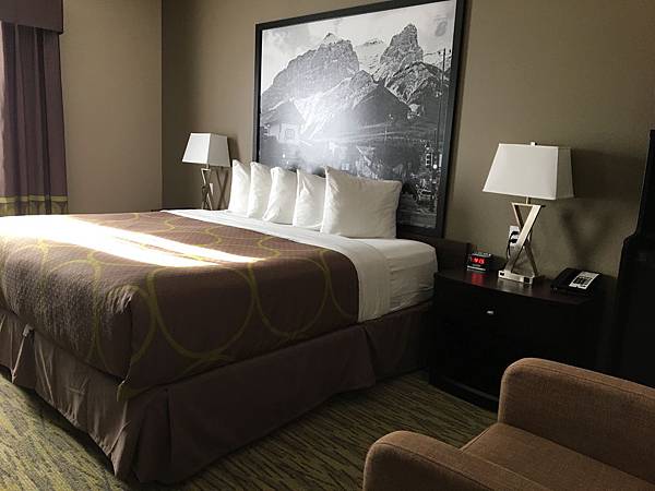 我們選擇住宿在Canmore小鎮,開車到班夫只要半小時,到露易絲湖也只有一小時車程,Super 8 by Wyndham Canmore(坎摩爾速8酒店)有很棒的無障礙房