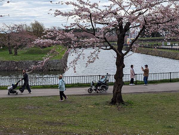 每年4月下旬至5月中旬是賞櫻季節。我們到函館的時間,已開始開花,五稜郭公園是不用門票的,賞櫻人潮爆滿,住在附近的好處,是一大早就可以先衝。
